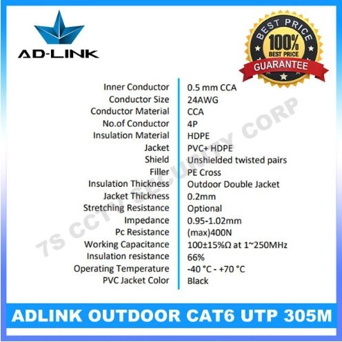COD ADLINK CAT6 Quality Outdoor UTP Ethernet LAN Cable 305m