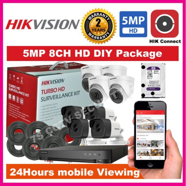 Hikvision 8CH 5MP HD CCTV Package DIY Kit 1944P with Mobile viewing TVI-8CH4D4B-5MP Eco+