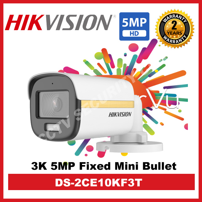 Hikvision DS-2CE10KF3T 3.6mm 3K 5MP Colorvu Full Time Color CCTV Bullet Camera 24/7 Colored