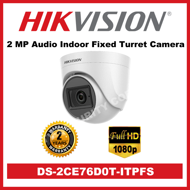 Hikvision DS-2CE76D0T-ITPFS 2MP 1080P Dome Indoor CCTV Camera with Audio