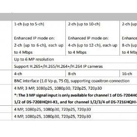 • The 3 MP signal input is only available for channel 1/2 of DS-7208HQHI-K1 H.265 Pro+/H.265 Pro/H.265 video compression