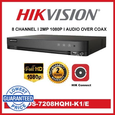 Hikvision DS-7208HQHI-K1/E(S) 3MP 2MP 8CH CCTV DVR | Audio over Coax | 8 Channel Turbo HD