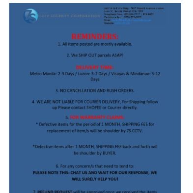 7S CCTV Security Corp. ใ ฃTEL: 02-8895-8879 ใ ฃ FAX: 02-8895-7117 ใ ฃ E-Mail : sales@7scsc.ph