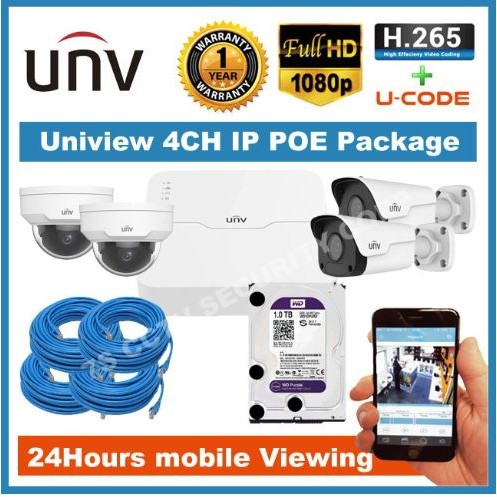 Uniview 4CH POE IP CCTV Package 4 Channel NVR 2MP Indoor and Outdoor Mobile viewing